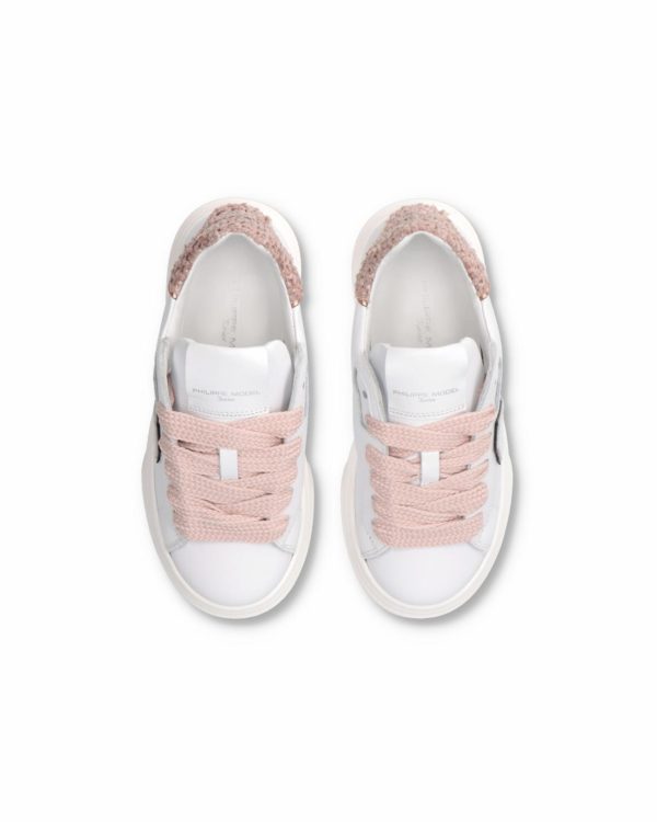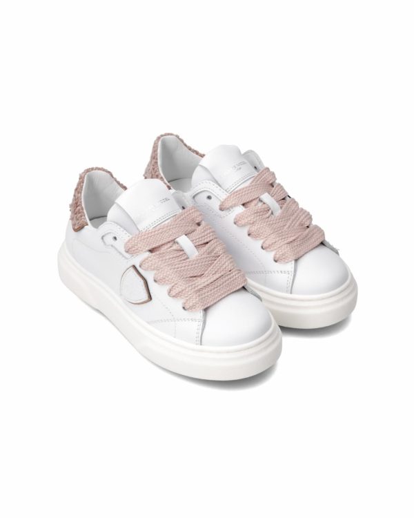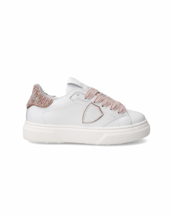 Dédiées aux petites fashionistas, ces nouvelles baskets Temple sont le choix idéal pour tous les jours. La tige en cuir de vachette souple est complétée par un col en chenille rose, nuance reprise sur les lacets et sur le bord de l’écusson. Semelle en caoutchouc ultra-léger, pour une parfaite liberté de mouvements.