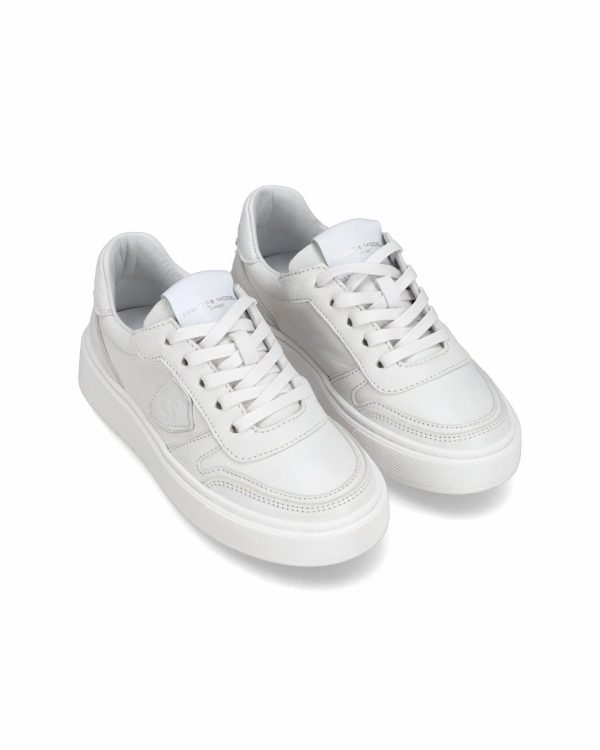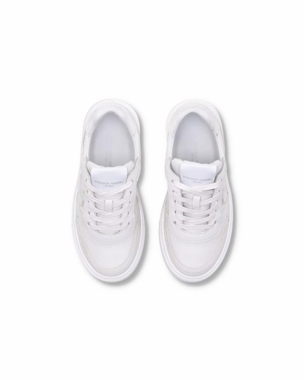 Le total white habille de sa polyvalence la nouvelle basket Nice version enfant : basse et avec une tige en cuir de veau, à porter au quotidien. Semelle en caoutchouc.
