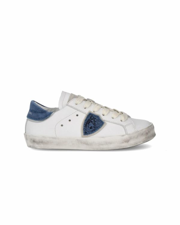 L’appel de la rue attire même les pieds les plus jeunes : voici la version enfant de l’emblématique sneaker Paris, dotée d’une tige en cuir blanc, de lacets en coton, avec des détails contrastés en nubuck bleu sur le bout du pied et un écusson sur le flanc de la chaussure. Grâce à sa doublure en cuir et coton et à sa semelle en caoutchouc avec bande appliquée à la main, cette paire vous garantit confort et style à la fois.