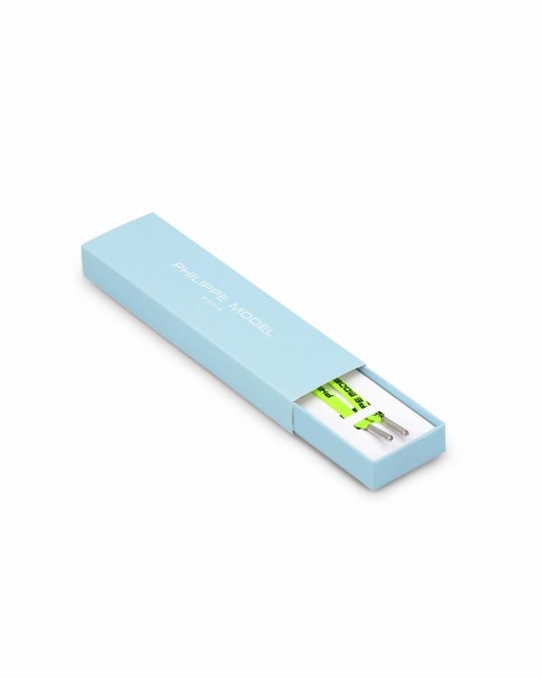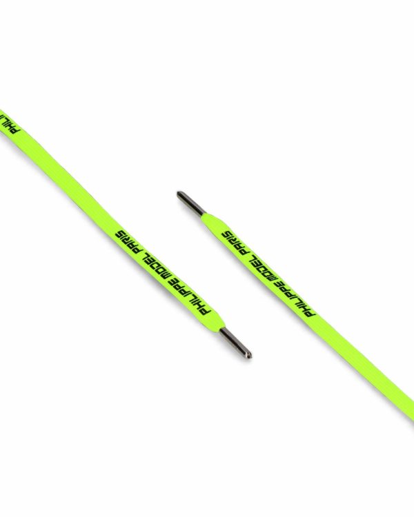 Lacets femme en polyester jaune fluo avec logo noir à effet contrastant et pointe en métal argenté