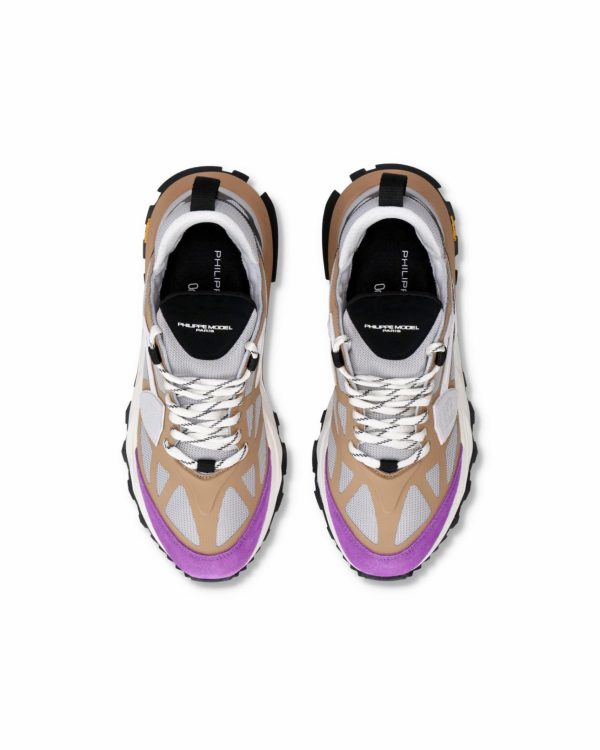 L’allure dynamique et sportive de cette basket outdoor trouve une nouvelle énergie dans le modèle Rocx : la tige ergonomique joue avec des tons neutres et la touche froide du daim violet, associés à des tissus thermosoudés et performants. La semelle intérieure OrthoLite assure confort et bien-être, tandis que la semelle Vibram® a été conçue exclusivement pour la marque Philippe Model.