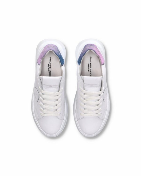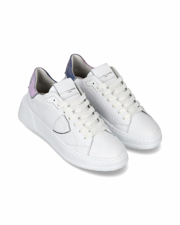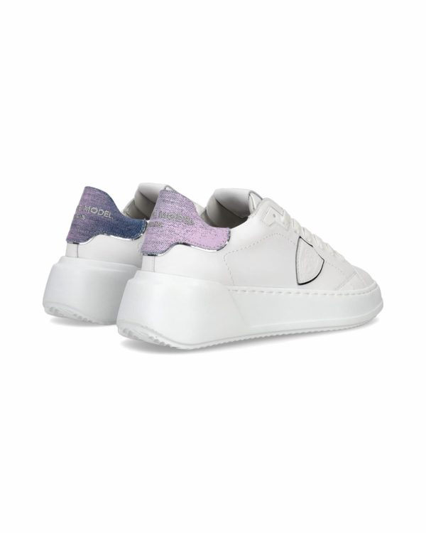 Des lignes et des formes épurées caractérisent cette nouvelle version de la basket Tres Temple. La chaussure en cuir souple blanc est ornée d’un imprimé denim délavé sur le talon pour un effet vintage et de bords argentées. Idéales pour porter au quotidien, elles affinent la silhouette grâce à l’épaisse semelle en caoutchouc ultra-légère à bord profilé.