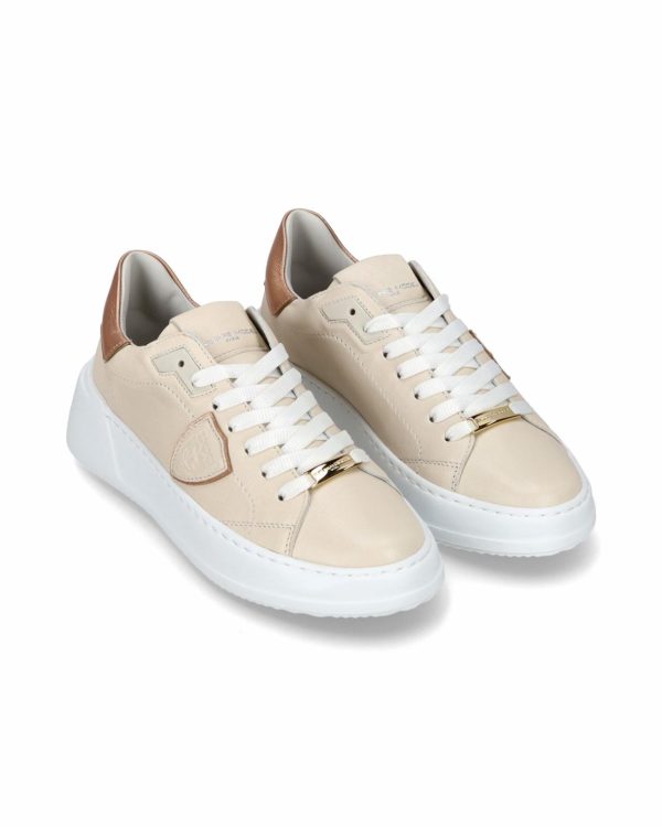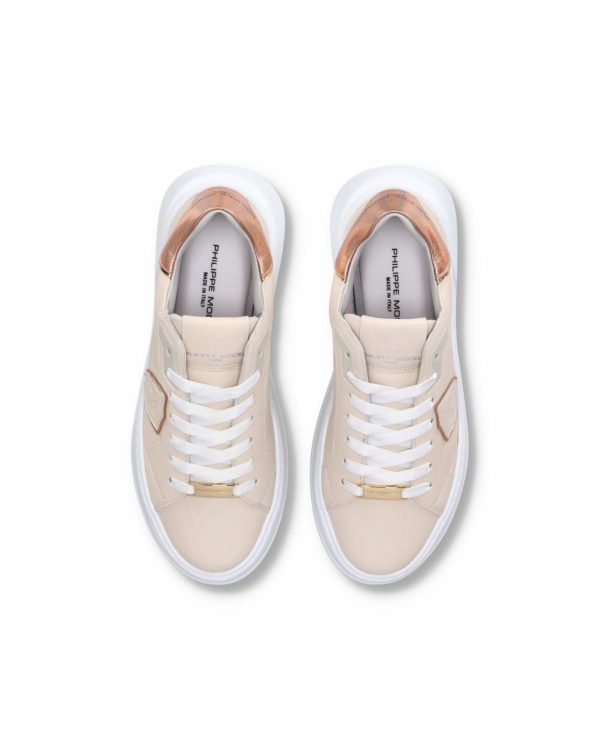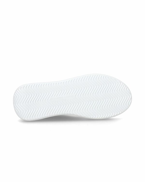 Ce modèle de Tres Temple est le point de rencontre entre des formes épurées inspirées des modèles des années 90 et une réinterprétation contemporaine de la mode urbaine. Cette version est en cuir souple, ornée de finitions en cuir métallique sur le talon en ton-sur-ton et sur les coutures de l’écusson. Les œillets renforcés et la semelle épaisse en caoutchouc double épaisseur et ultra-léger complètent le design.