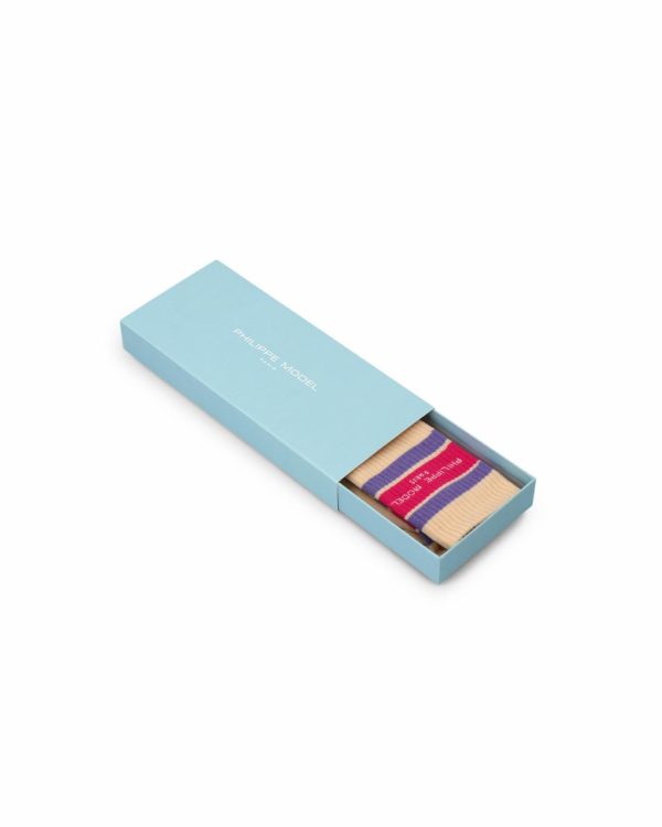 Collection de chaussettes Philippe Model Paris en coton extensible et bandes colorées contrastées. À associer avec des baskets pour un style singulier.