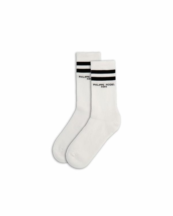 Chaussettes en coton avec élasthanne blanc avec logo noir à effet contrastant