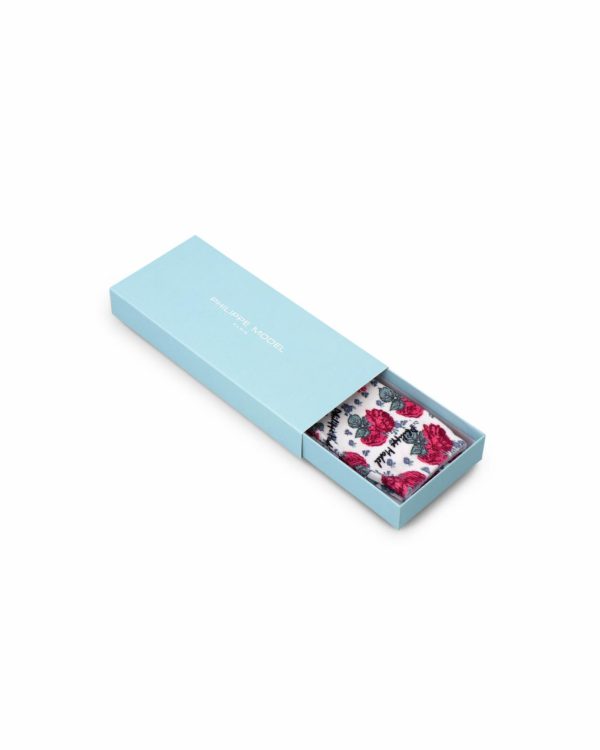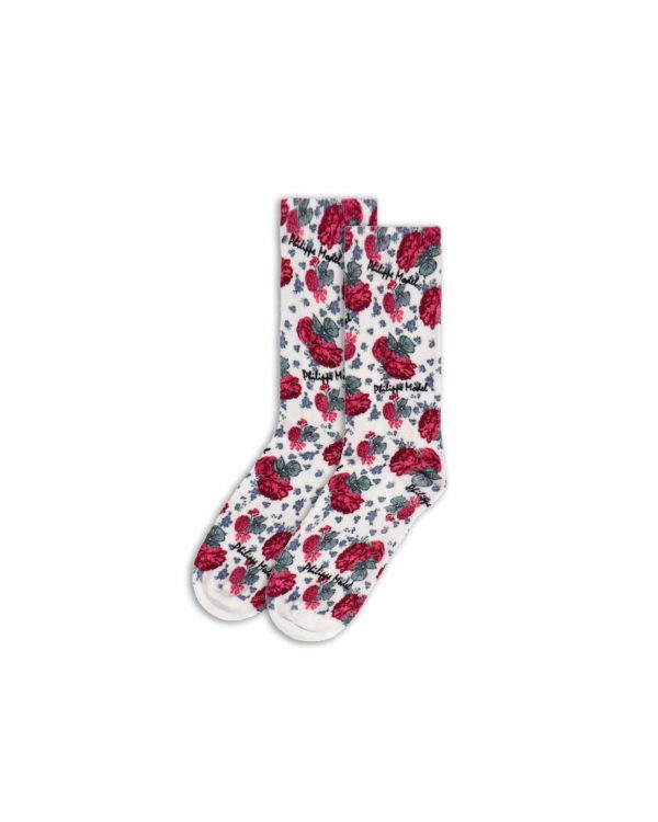 Collection de chaussettes Philippe Model Paris en coton extensible, imprimé fleuri et logo contrasté. À associer avec des baskets pour un style singulier.
